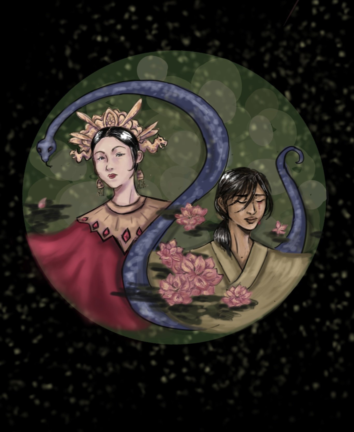 My digital illustration of Princess Turandot on the left and peasant girl, Liu, on the right. It is important to note that the headpiece for Turandot that I drew is based more on the old opera posters and stage productions for Turandot and not entirely accurate to historical imperial Chinese crowns.