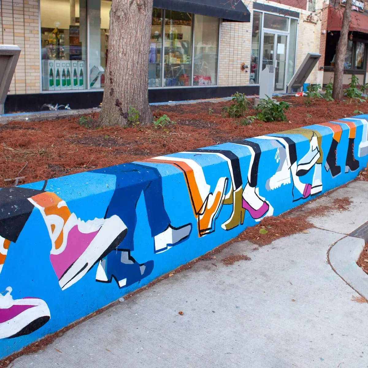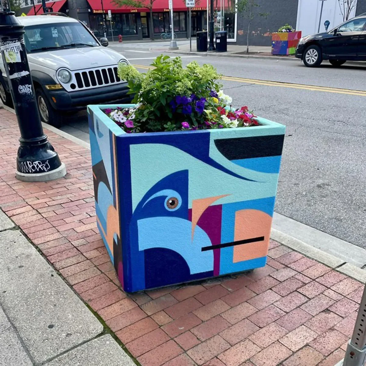 The A2AC Murals and Planters project has helped turn walls and sidewalks across Ann Arbor into bright, welcoming spaces filled with local art. Led by the Ann Arbor Art Center through its Art in Public initiative, the program has supported large-scale murals and hand-painted planters throughout downtown and surrounding neighborhoods. These works showcase a wide range of artistic styles and voices while bringing color, creativity, and energy to everyday places where people live, shop, and gather. By partnering with local businesses, property owners, and community members, A2AC Murals and Planters strengthens Ann Arbor’s identity as a city that values public art and makes creativity visible and accessible to all. The 2025 planter installations recognized through the Golden Paintbrush Award were created by local artists Bill Burgard and Rick Malt.