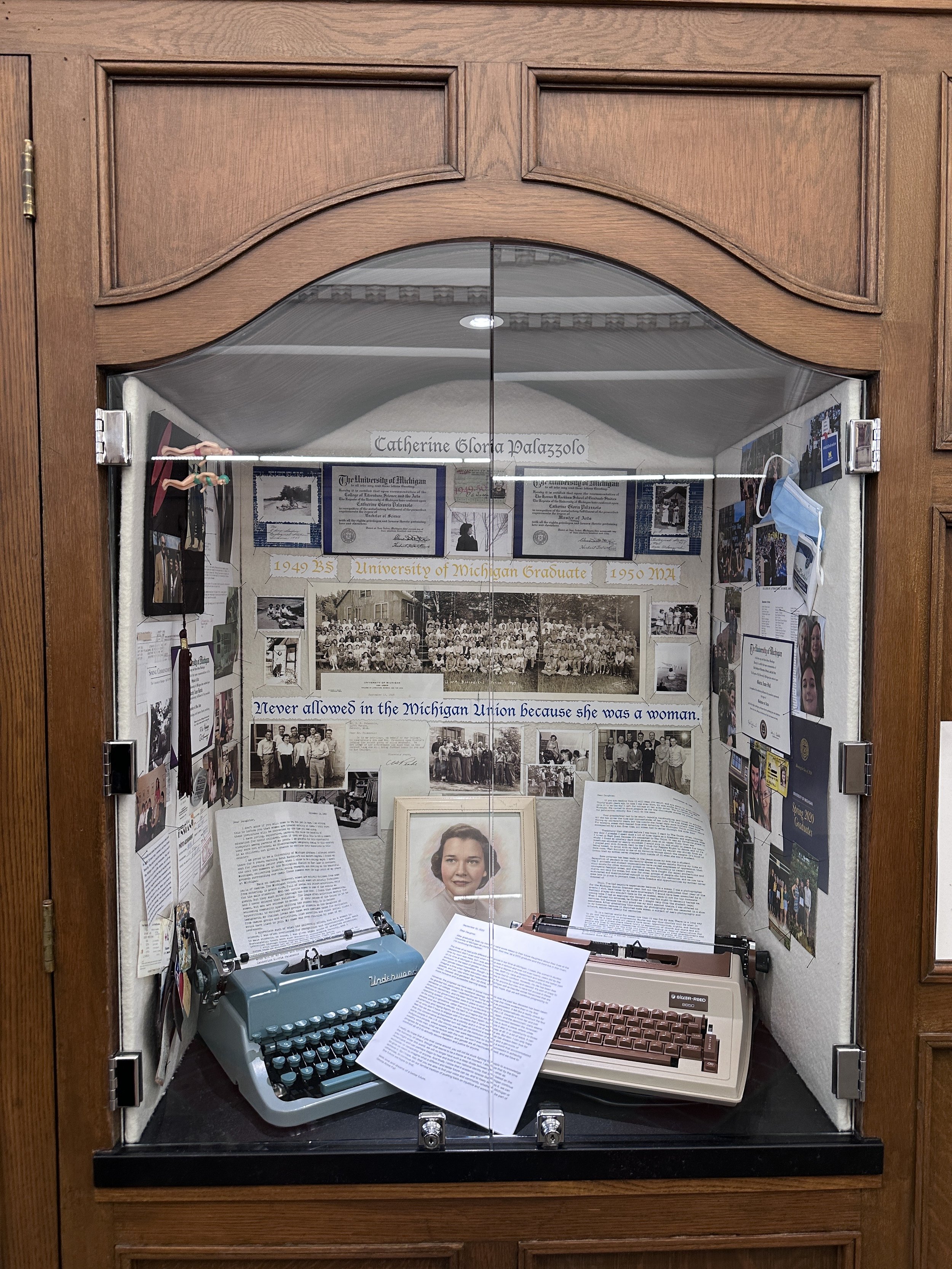 Liz Barick Fall’s mother went to the University of Michigan before women were allowed inside the Union, and Fall herself attended just after the end of gender restrictions and spent a lot of time there because she lived in West Quad. Her four daughters went here as well. Fall used family memorabilia to reflect on university life for women as political and cultural trends change over time.